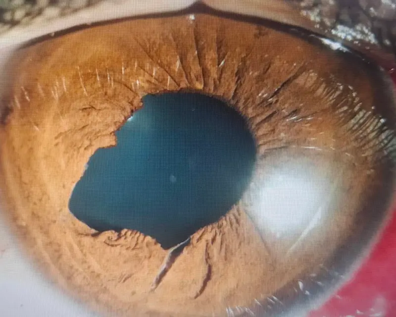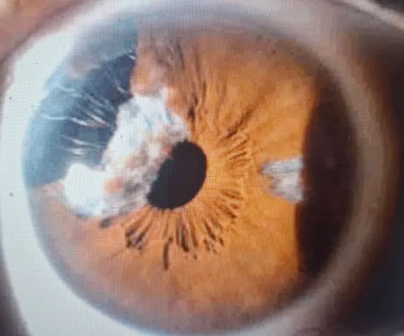 洪啟庭表示,去年一位60歲蔡先生右眼中度白內障,沒有糖尿病與高血壓,在接受白內障手術中卻發現虹膜的波浪狀移動,甚至虹膜脫垂出現,極容易卡住器械,必須將脫位的虹膜復位,才能繼續,但此時虹膜已出現鬆弛與部分萎縮,同時可能合併角膜水腫,也因為永久性的瞳孔擴大與變形,蔡先生時常抱怨畏光、立體感變差、夜間視力變差,甚至好多次夜間開車差一點發生車禍。